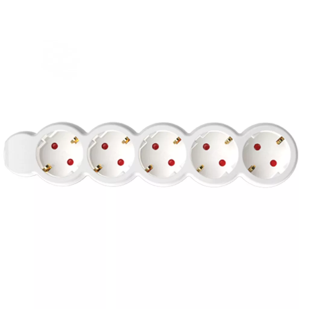 Az NV 5/WH Hálózati elosztó fehér színű, 5 db aljzattal és 1,5 m hosszú H05VV-F 3G1,0 mm2 kábellel felszerelt. A biztonságos használat érdekében gyermekvédelemmel ellátott. Maximum 3500 W-ig terhelhető.