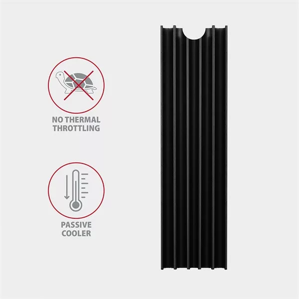 A 10 mm magas bordázott alumínium hűtőborda az M.2 SSD műveletei során keletkező hő jobb elvezetését segíti elő. Emellett akár 25°C-kal is csökkenti a működési hőmérsékletét. Ez meghosszabbítja az M.2 SSD élettartamát, és megakadályozza a lemez lelassulását, az úgynevezett "Thermal Throttling".