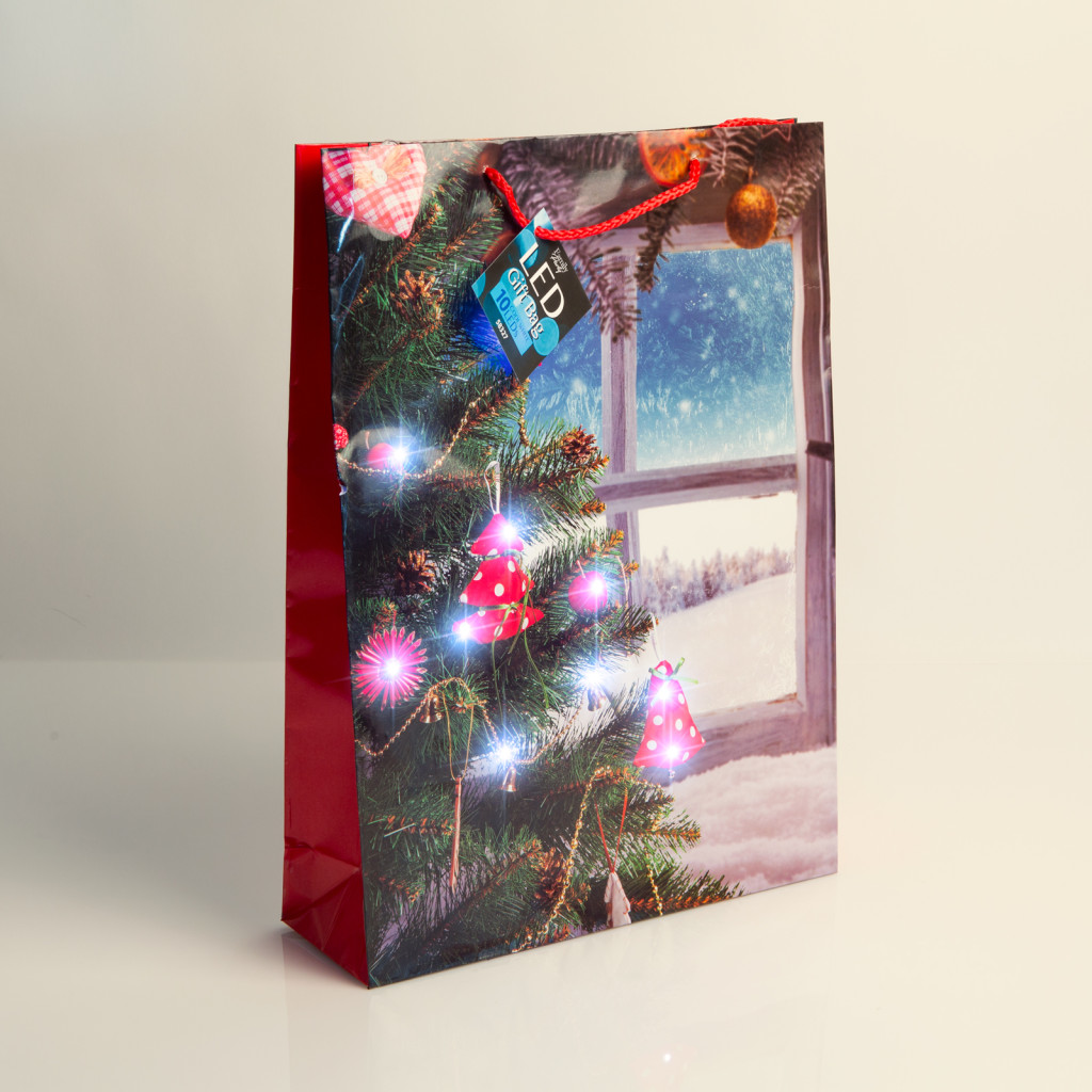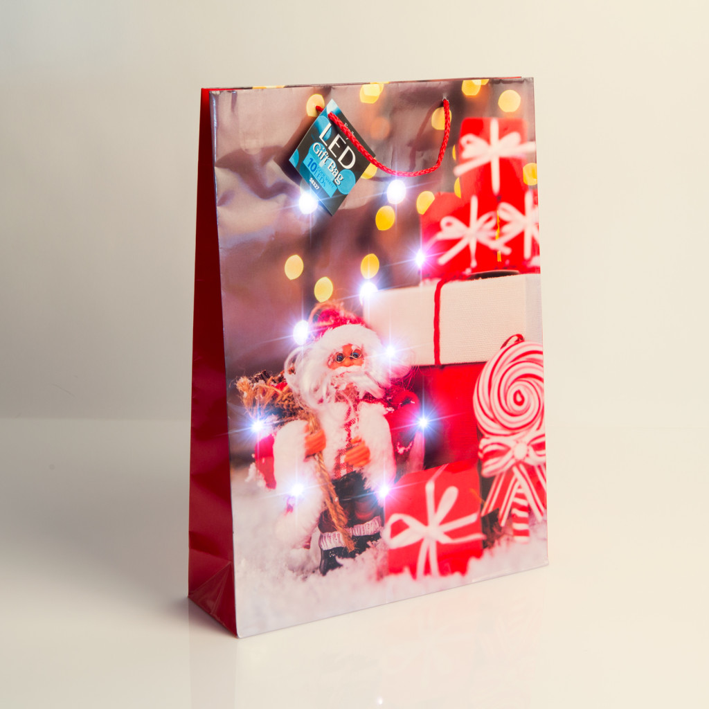 Ajándéktasak - 10 hidegfehér LED, papír - 330 x 102 x 457 mm - 4 féle / csomag