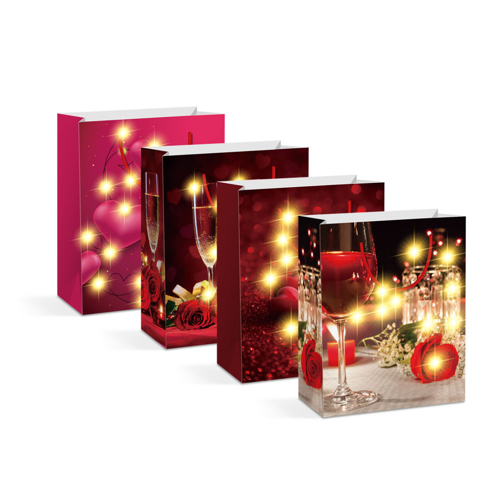 Ajándéktasak - 10 melegfehér LED, papír - 265 x 127 x 330 mm - 4 féle / csomag