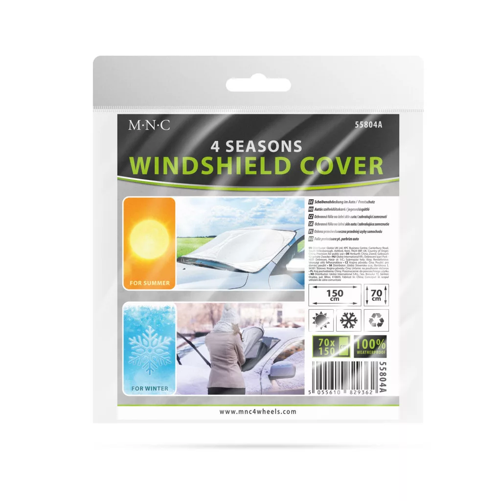 Praktikus téli-nyári kiegészítő autójához. Ennek a szélvédőtakarónak köszönhetően megakadályozhatja a szélvédő jegesedését, valamint könnyen eltávolítható a hóréteg is a szélvédőről. A hosszított kivitelnek köszönhetően könnyen rögzítheti az ajtóknál. A merev kör betét megfelelő tartást biztosít a hóréteg eltávolításakor. Ugyanakkor használható a nyári forróság ellen is, a tapadókorongokkal könnyen rögzíthető az autó belső terében is.