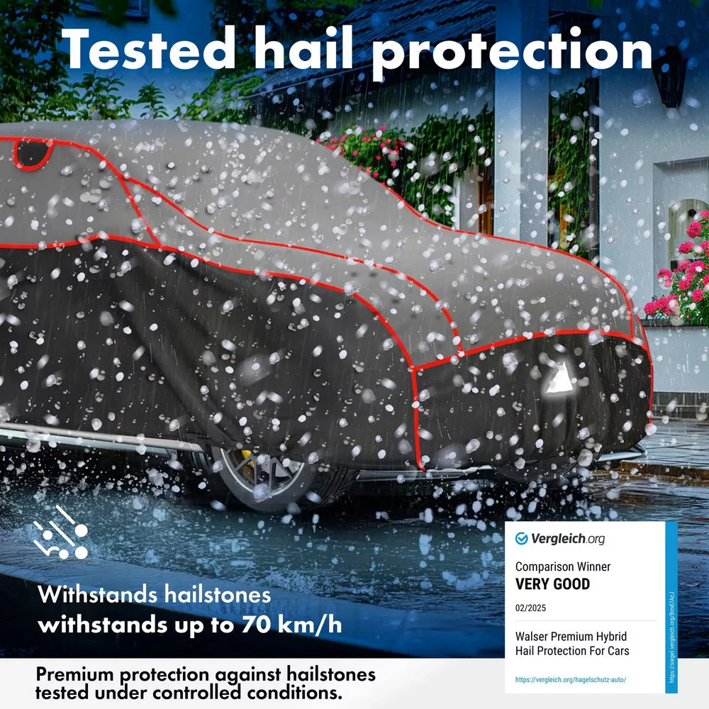 - jégeső elleni védelem: akár 22,7 mm átmérőjű, 6100 mm3-es jégeső ellen is védelmet nyújt (akár 70 km/h becsapódási sebességnél). Laboratóriumi körülmények között tesztelve – független vizsgálóintézet által acélgolyókkal szimulált "jégeső-bombázás". TÜV Austria – használati érték, nagyobb méretű jéggel szemben is jelentősen csökkenti az okozott kárt,