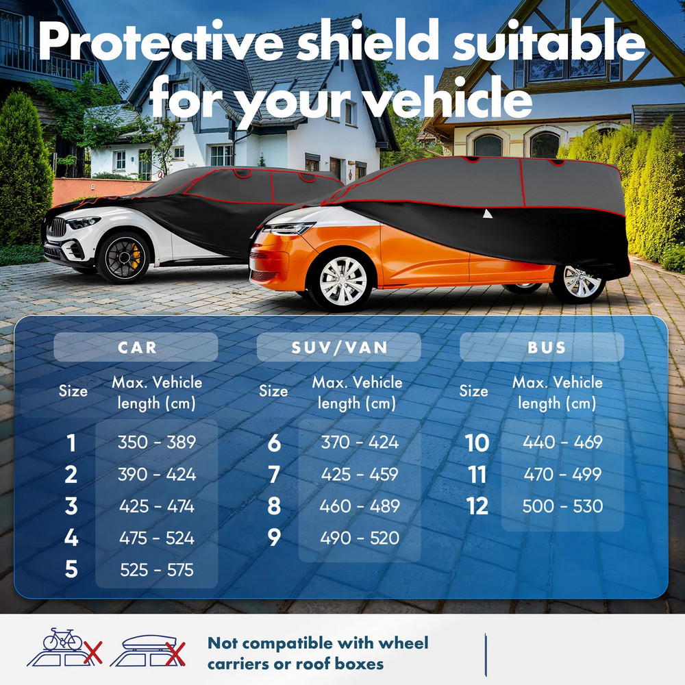 Figyelem! Ez a típus NEM rendelkezik UV elleni védelemmel! A tartós és extrém UV-sugárzás megrövidítheti az élettartamát. Esztétikai elváltozással kell számolni, ami azonban a jégvédelmet nem befolyásolja. Elsődlegesen és kifejezetten alkalmi használata javasolt viharos, jégesős időszakban.