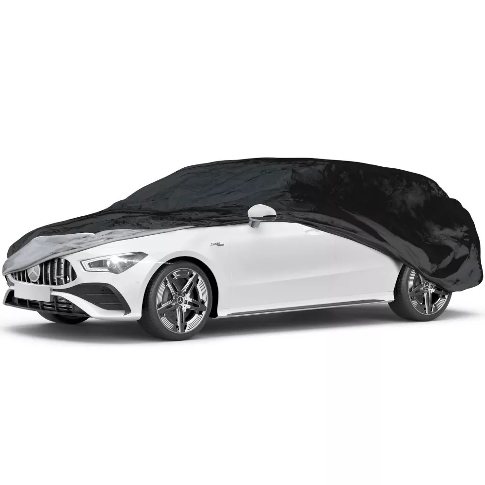 A ponyva 120 g/m²-es PEVA bevonatú, nem szőtt anyagból készült, ami vízállóvá teszi – nagy előny kültéri használatra. Ez megvédi járművét az esőtől, jégtől, hótól és egyéb szennyeződésektől, például portól, madárürüléktől, fagyantától és levelektől.