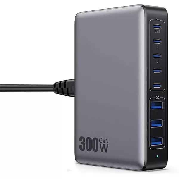 BLACKBIRD Hálózati Töltő Hordozható GAN 300W 5xUSB-C PD + 3xUSB QC, Fekete