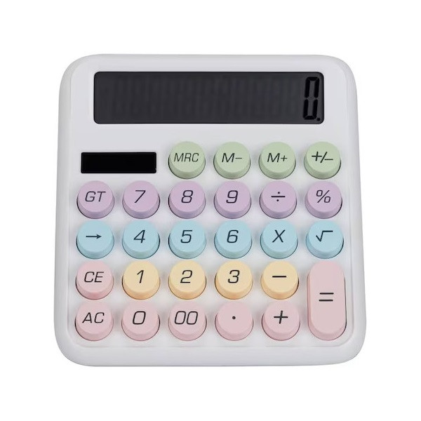 BLACKBIRD Számológép döntött kijelző, színes nagy gombok, Fehér