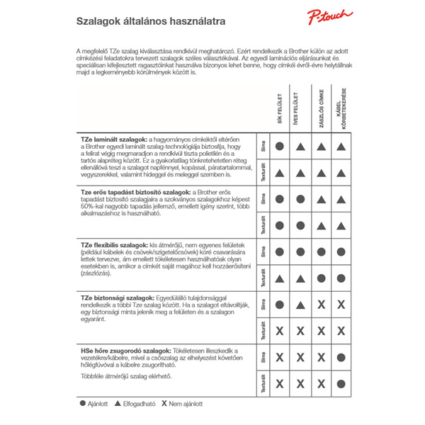 A TZe szalagkazetták gyorsan, egyszerűen cserélhetőek; számos színben, méretben és anyagban elérhetőek, ezáltal is biztosítva, hogy a P-touch készülék megfeleljen az Ön címkézési igényeinek.