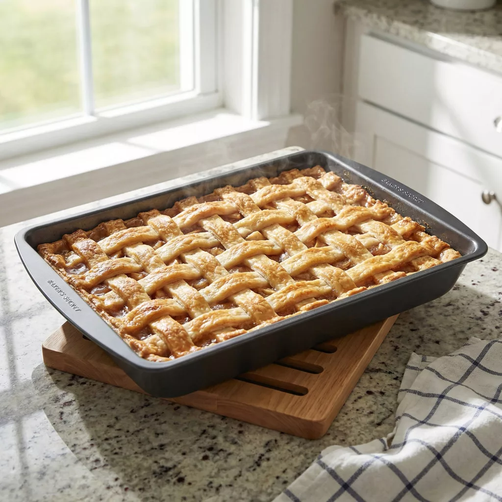 Készítsen finom sülteket, tésztákat és egytálételeket a Baker’s Secret Essential Line kiváló minőségű sütőtepsijével! A masszív, mégis könnyű 0,5 mm vastag anyag biztosítja az egyenletes hőeloszlást, így az ételek minden alkalommal tökéletesen átsülnek. A tapadásmentes bevonatnak köszönhetően az étel könnyen kiemelhető, a tepsi pedig egyszerűen tisztítható. Kényelmesen megfogható pereme biztonságos és stabil kezelést biztosít még forró állapotban is. Tökéletes választás süteményekhez, húsokhoz, zöldségekhez és minden olyan ételhez, amit tepsiben szeret sütni!