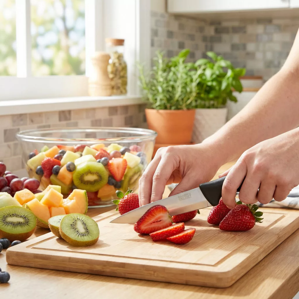 A séfkés elengedhetetlen eszköz minden konyhában, legyen szó aprításról, szeletelésről vagy darabolásról. Éles, rozsdamentes acél pengéje precíz és tiszta vágást biztosít, így a zöldségek, húsok és gyümölcsök előkészítése gyorsabbá és egyszerűbbé válik. Ergonomikus, csúszásmentes markolata kényelmes fogást nyújt, ezáltal hosszabb használat során is biztonságos és stabil kezelést garantál. Tartós kialakítása és megbízható teljesítménye miatt ideális választás mindennapi konyhai használatra, kezdők és tapasztalt szakácsok számára egyaránt.