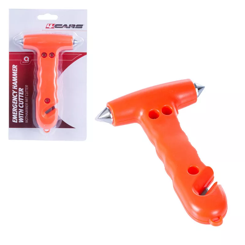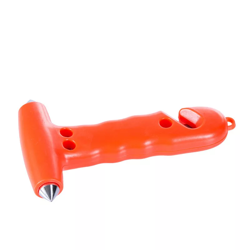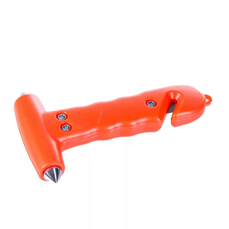 Vészhelyzeti ablaktörő kalapács, biztonsági öv vágóval.