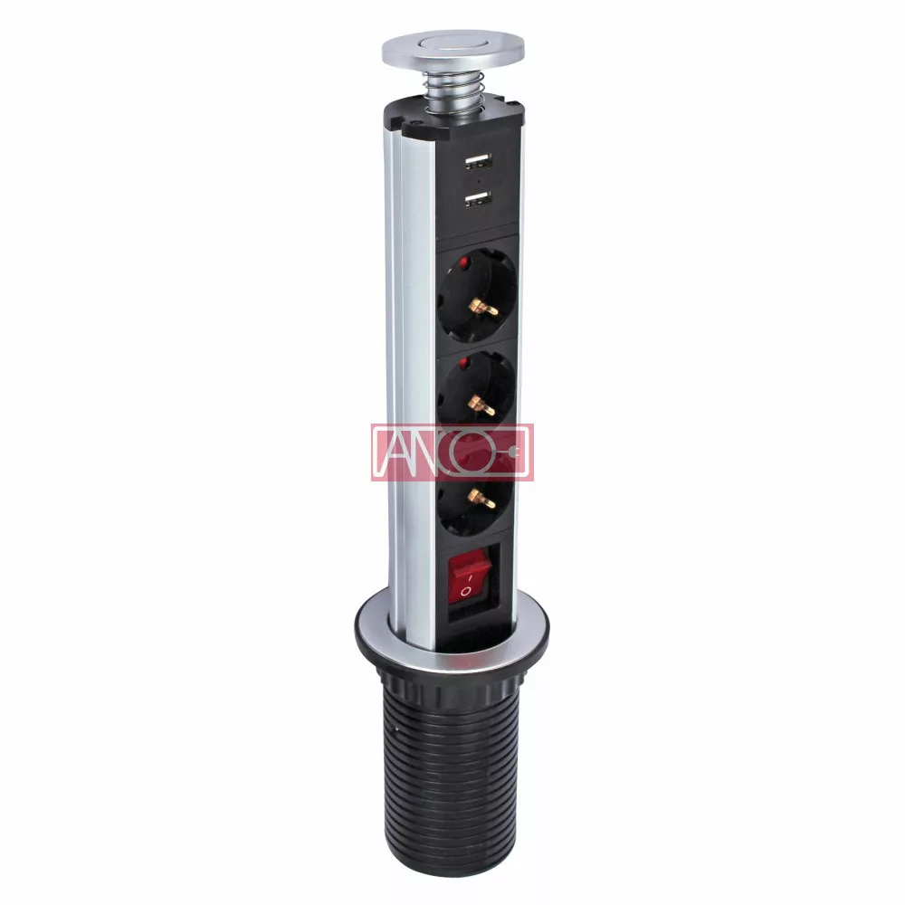 Bútorba építhető rejtett 3-as elosztó+2USB