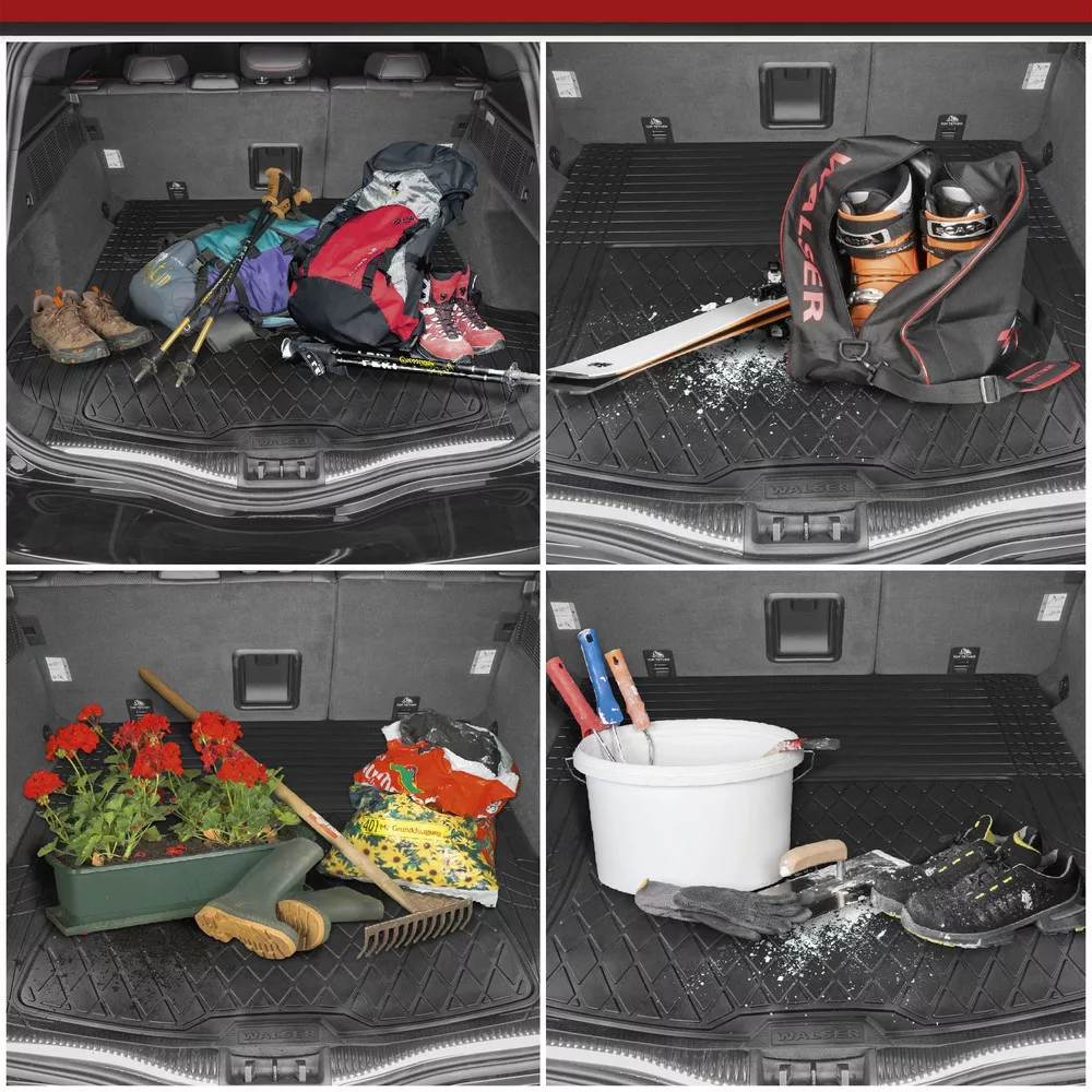 Kifejezetten a csomagtér védelmére tervezve. Kiváló minőségű, strapabíró anyagból készült, csúszásmentes felülettel és hátul csúszásgátló tüskékkel. Ez a szőnyeg az összes szállított tárgyat a helyén tartja. Ezenkívül éles szerszámmal könnyen vágható a készen megjelölt vágási kontúrok mentén, hogy minden általános járműtípushoz illeszkedjen. Használata egyértelműen ajánlott pl. állatok, áruk, építési anyagok, szerszámok vagy bármilyen más szennyező eszközök szállításakor.
