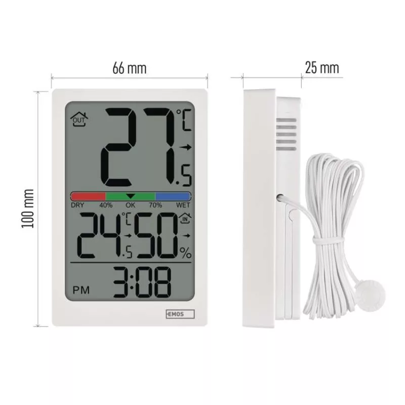 Digitális hőmérő páratartalom-mérővel, vezetékes érzékelővel, ébresztőórával E0558P