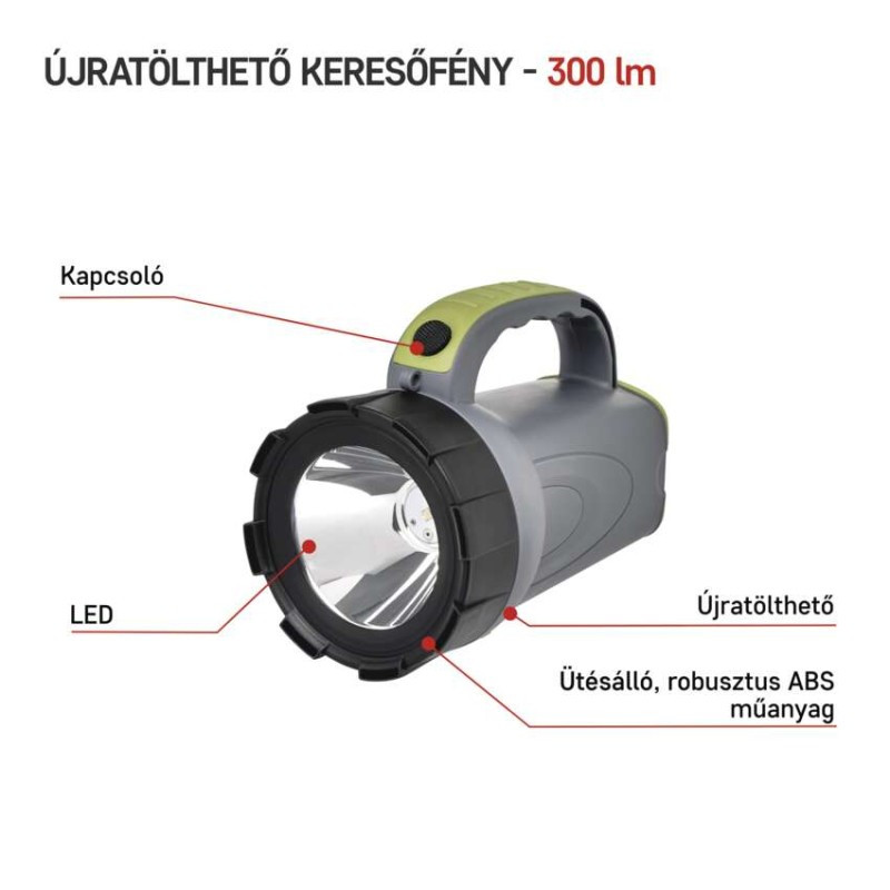 akkumulátor típusa: 2 400 mAh/3,7 V|anyag: ABS műanyag|a töltés LED jelzése: igen|az akkumulátor állapotának LED-es jelzése: nem|elem a csomag része: igen|értékesítési csomagolás: 1 db, doboz|feltöltési idő: 4,5 óra|fényáram: LED 50 % – 140 lm, LED 100 % – 300 lm|fényforrás: OSRAM LED|fókusz: nem|garancia-időszak: 2 év|jellemzők: nincs megadva|márka: EMOS|maximális fényárama: 300 lm|max. világítási távolság: 370 m|méretek: 162 × 100 × 140 mm|speciális funkciók: akkumulátorvédelem|súly: 275 g|szín: szürke-fekete-zöld|táplálás: Li-Ion akupack|tartozékok: töltő adapter + gépkocsi adapter, vállszíj|tölthető: igen|töltőcsatlakozó típusa: nincs megadva|ütésállóság: nem|üzemidő részletezés: LED 50 % – 30 óra, LED 100 % – 24 óra|üzemmódok: LED 50 %, LED 100 %|világítási idő: 24–30 óra|világítási távolság: LED 50 % – 250 m, LED 100 % – 370 m|világítási üzemmódok száma: 2|vízálló: nem