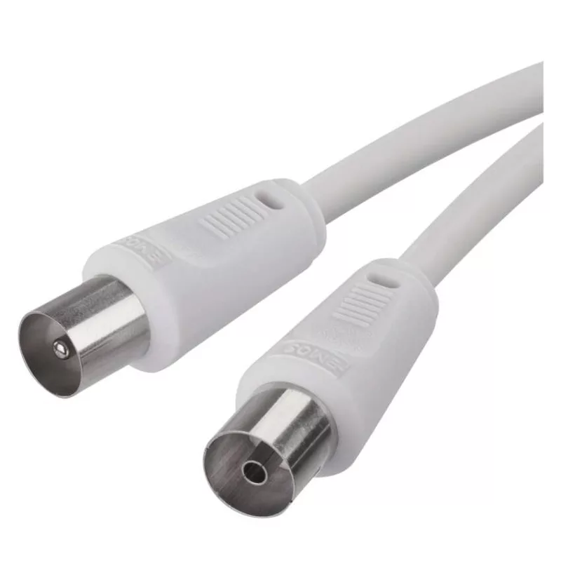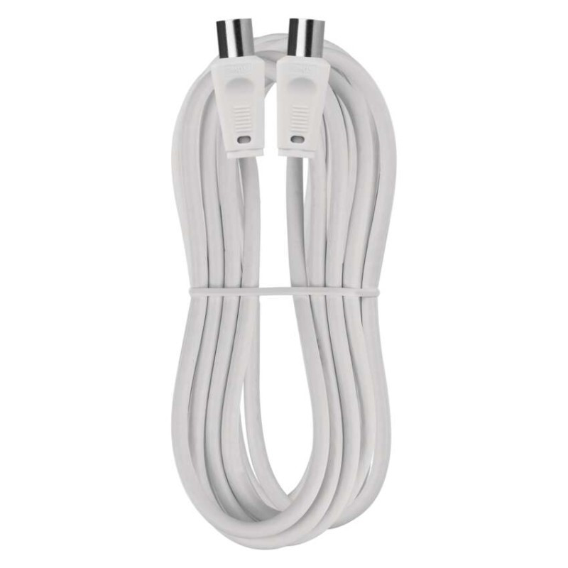 Koaxiális antennakábel IEC csatlakozódugóval és csatlakozóhüvellyel. A kábel kettős árnyékolású az elektromágneses interferencia csökkentése érdekében. 5 m-es kábelhossz.