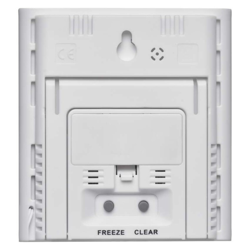 Digitális hőmérő vezetékes érzékelővel. A hőmérő menti a beltéri és kültéri hőmérsékletet, a beltéri páratartalmat, a legalacsonyabb és legmagasabb mért hőmérsékleti értéket, valamint figyelmeztet a fagyra. A hőmérő 2 m hosszú érzékelővel rendelkezik.