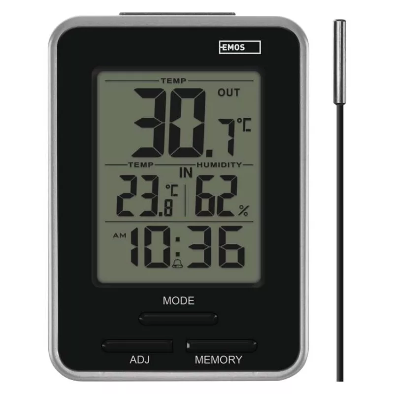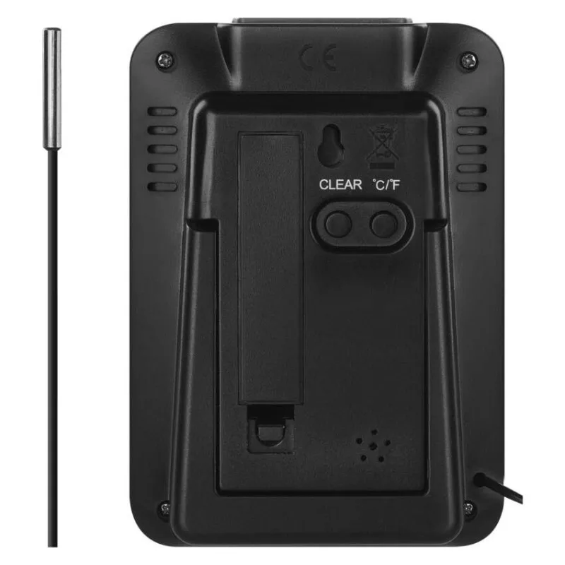 Digitális hőmérő páratartalom-mérővel, vezetékes érzékelővel, ébresztőórával E0121