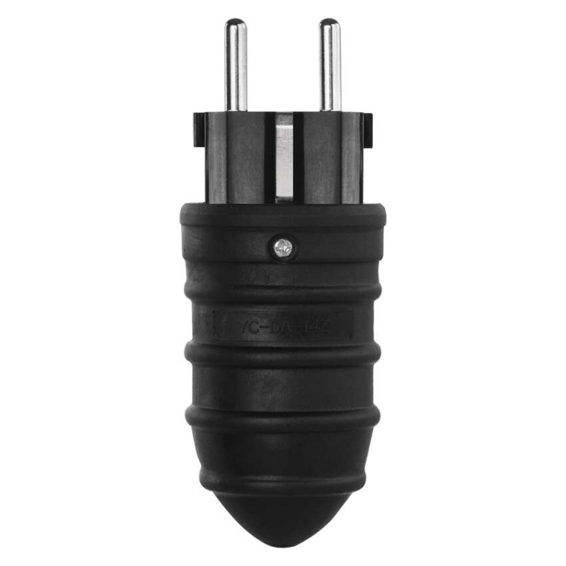 Gumi csatlakozódugó mobil hosszabbító kábelekhez. Olyan készülékek csatlakoztatásához tervezték, amelyek komolyabb védelmet igényelnek (akár kültéren is).