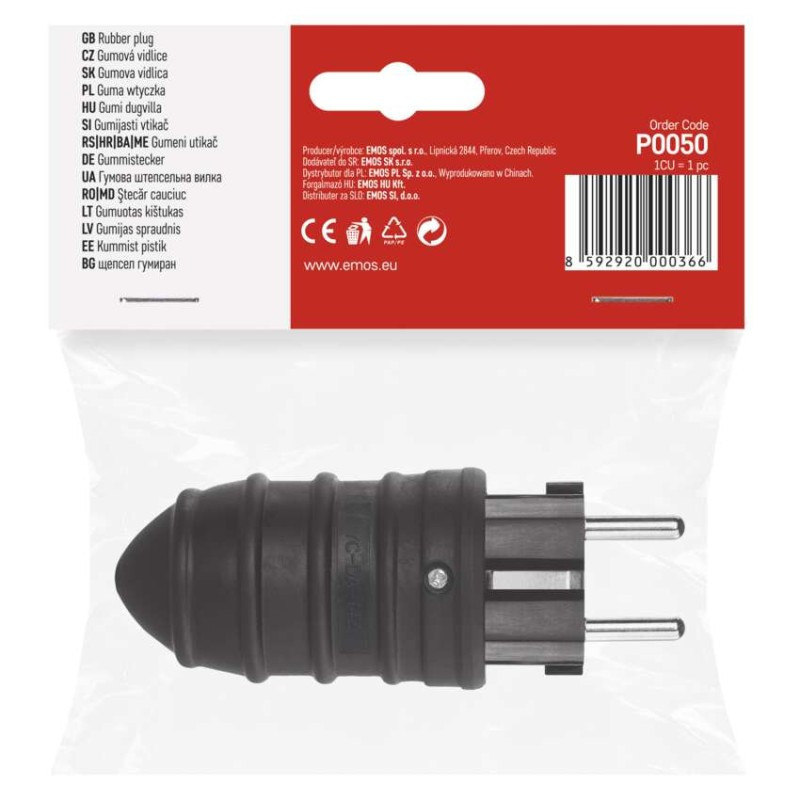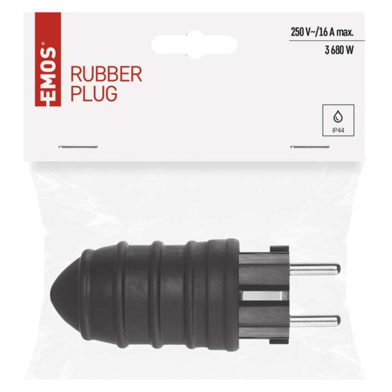 aljzatok száma: nincs megadva|anyag: gumi|biztonsági érintkezési helyzet: nincs megadva|értékesítési csomagolás: 1 db, akasztható|feszültség/áram: 250 V~/16 A max.|gyerekzár: nem|jelátviteli frekvencia: nem|jel hatótávolsága: nincs megadva|kapcsoló: nem|könnyű betanítás: nem|kültéri használat: nem|max. terhelés: 3 680 W|pólusszám: nincs megadva|szín: fekete|távvezérlő: nem|termék: gumi dugvilla|típus: FRENCH/SCHUKO|védettség: IP44|vezérelhető: nem
