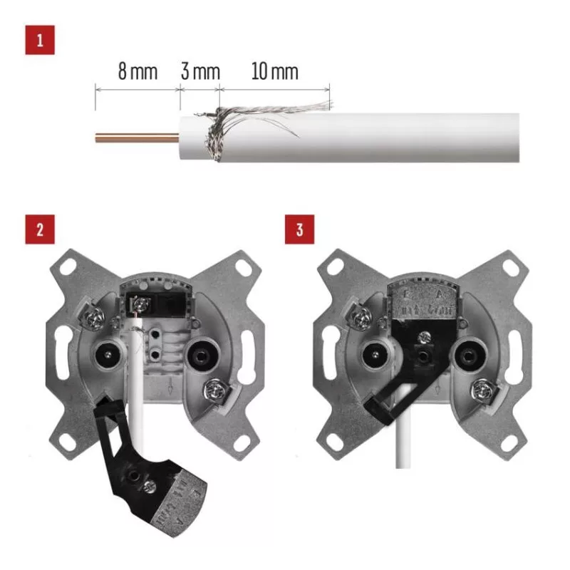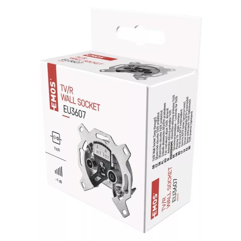 beiktatási csillapítás: 3 dB|csatlakozó típusa: IEC|értékesítési csomagolás: 1 db, doboz|jelölés: TV (7) + R (7)|méretek: 26 × 60 × 60 mm|tartozék fedél: nem|típus: átmenő|végcsillapítás: 7 dB