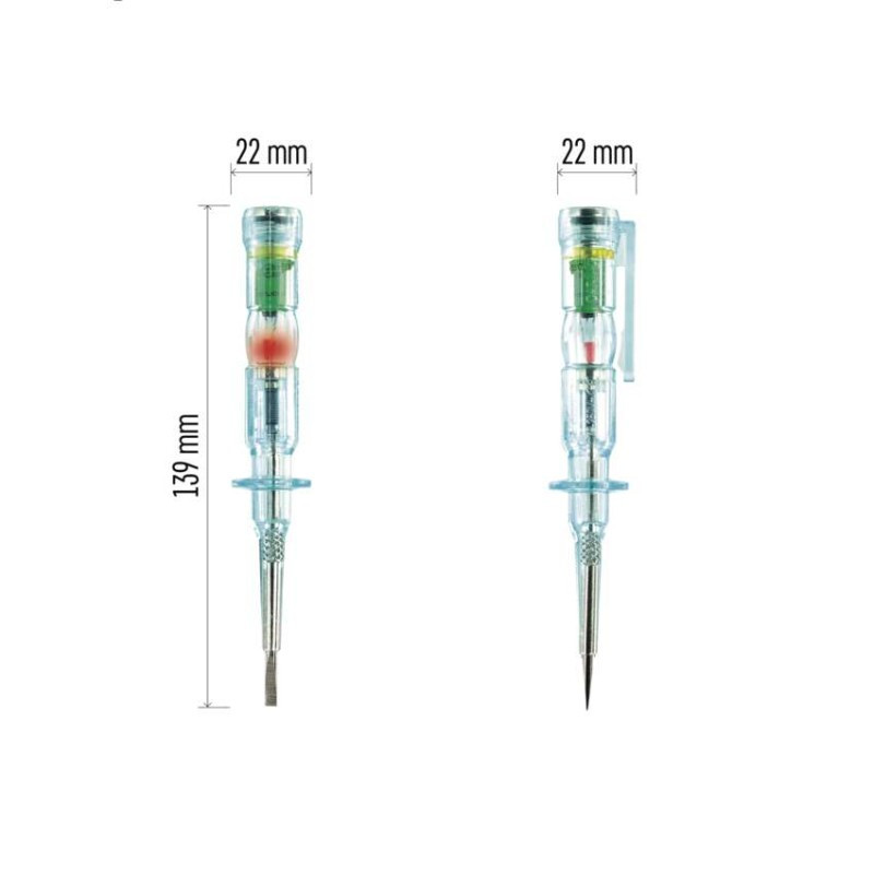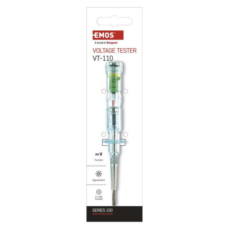 Feszültségmérő fényjelzéssel. Az eszköz 70–250 V-os váltóáram és 0–250 V-os egyenáram mérésére szolgál. A mérőeszköz érzékeli a rövidzárlatot és az áramforrások polaritását is. A mérőeszköz 2 db LR41 akkumulátorral működik (mellékelve).