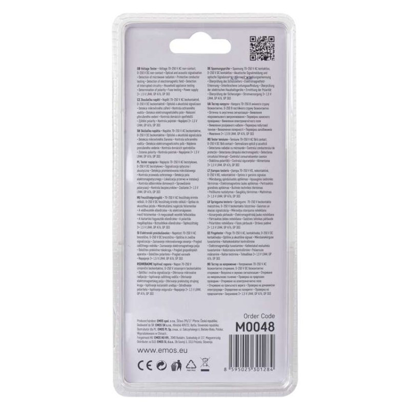 Feszültségmérő fényjelzéssel. Az eszköz 70–250 V-os váltóáram és 0–250 V-os egyenáram mérésére szolgál. A mérőeszköz érzékeli a rövidzárlatot és az áramforrások polaritását is. A mérőeszköz 2 db LR41 akkumulátorral működik (mellékelve).