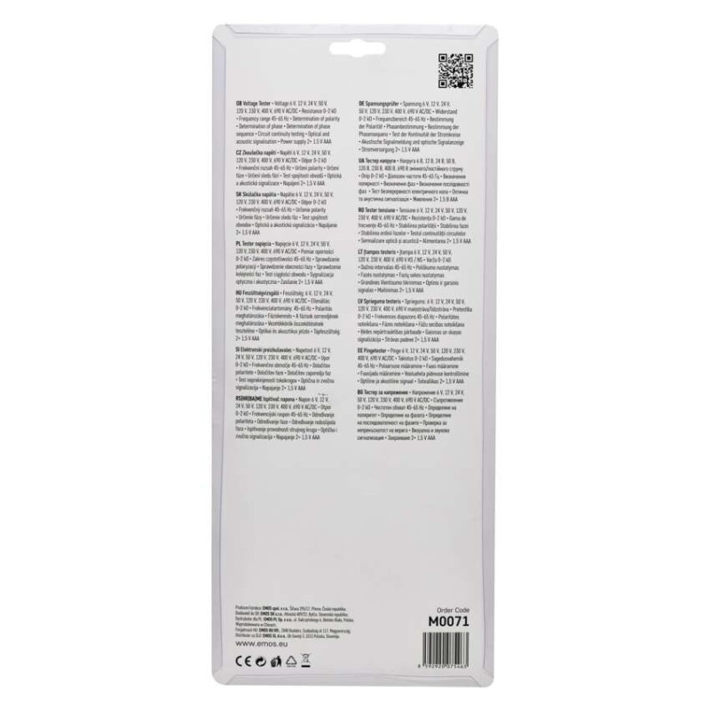 a fokozat megállapítása: igen|a polaritás megállapítása: igen|csatlakozásmérés: igen|egyenáramú feszültség: 6–690 V|értékesítési csomagolás: 1 db, bliszter|frekvenciatartomány: 45–65 Hz|jelzés: optikai + akusztikus|két érzékenység beállítása: nem|kontakt mentes mérés: nem|táplálás: 2× 1,5 V AAA (priloženo)|váltakozó feszültség: 6–690 V|váltóáramú és egyenáramú feszültség: 6 V, 12 V, 24 V, 50 V, 120 V, 230 V, 400 V, 690 V