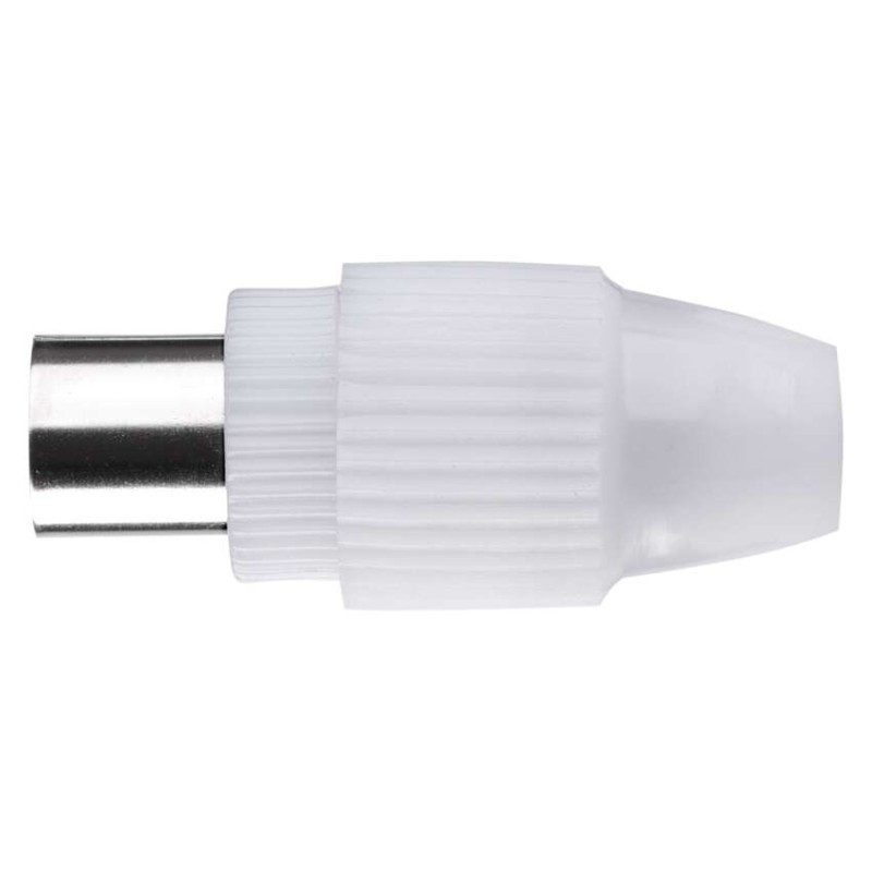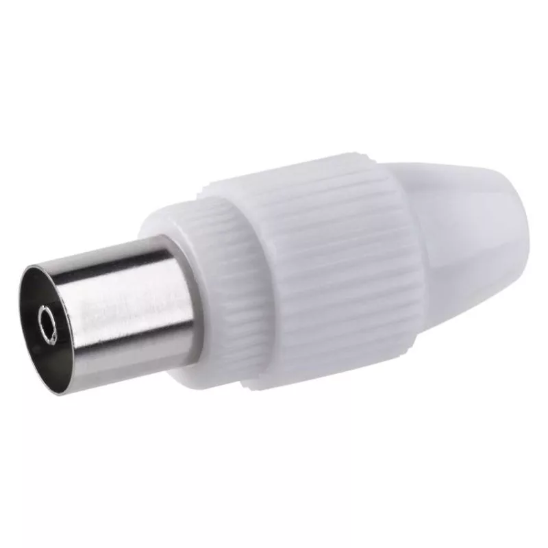 IEC csatlakozóhüvely koaxiális kábel csatlakoztatásához. Fehér szín. Műanyag. 10 darabos kiszerelésben elérhető.