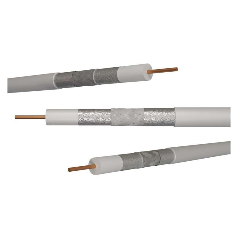 A legjobb minőségű koaxiális kábel tiszta réz központi vezetővel, ónozott CuSn rézből készült TRISHIELD tripla árnyékolással, fehér színű. A kábelt CCTV-, TV- és SAT-jelek nagy teljesítményű átvitelére tervezték.
