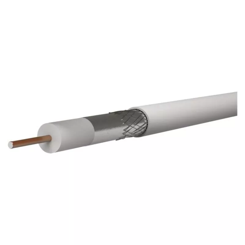 RG6 típusú univerzális koaxiális kábel vörösréz borítású acélszálból készült központi vezetővel, alumíniumvezetékből készült dupla árnyékolással, fehér színű. Ezt a kábelt TV- és SAT-jelek nem nagy igénybevételt jelentő átviteléhez