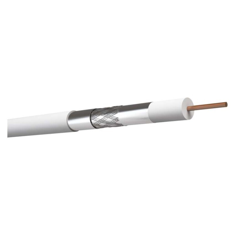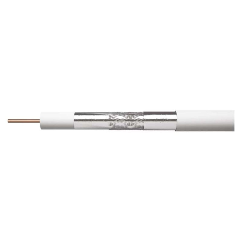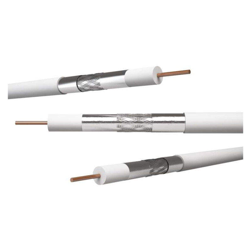 A legjobb minőségű koaxiális kábel tiszta réz központi vezetővel, ónozott CuSn rézből készült tripla árnyékolással, fehér színű. A televíziós jelátvitellel kapcsolatos összes nagy teljesítményű alkalmazáshoz tervezve.
