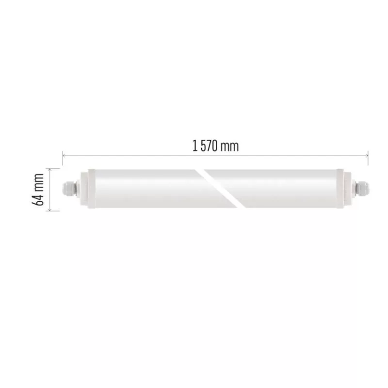 a diffúzor anyaga: műanyag (PC)|a diffúzor anyaga: tejfehér|akkumulátor garancia: nincs megadva|anyag: műanyag (PC)|áramerősség: 230 mA|áthidalási idő: nincs megadva|élettartam: 50 000 óra|értékesítési csomagolás: 1 db, doboz|fényáram: 6 000 lm|fényáram vészhelyzeti üzemmódban: nincs megadva|fényforrás: LED|fény színe: természetes fehér|feszültség: 220–240 V|fogyasztás: 51 W|frekvencia: 50/60 Hz|futóegység: igen|garancia-időszak: 5 év|helyettesítő: 2× 58 W CFL|kapocs anyaga: nincs kapocs|keret színe: fehér|lámpatest: műanyag (PC)|mechanikai behatás elleni védelem: IK08|méretek: 1 570 × 64 × 64 mm|rögzítés típusa: felcsatolva|sugárzási szög: 120°|színhőmérséklet: 4 000 K|színvisszaadási index (CRI): Ra >80|tompító funkció: nem|üzemi hőmérséklet tartomány: -20 °C és +40 °C|védelmi osztály: II|védettség: IP65|vezérlés típusa: nincs megadva