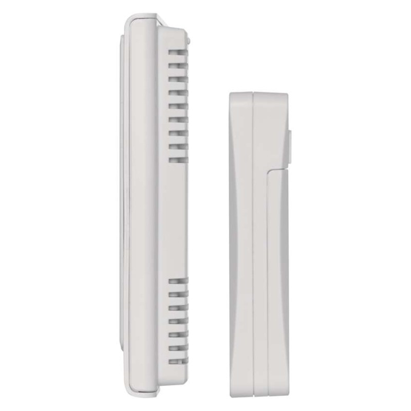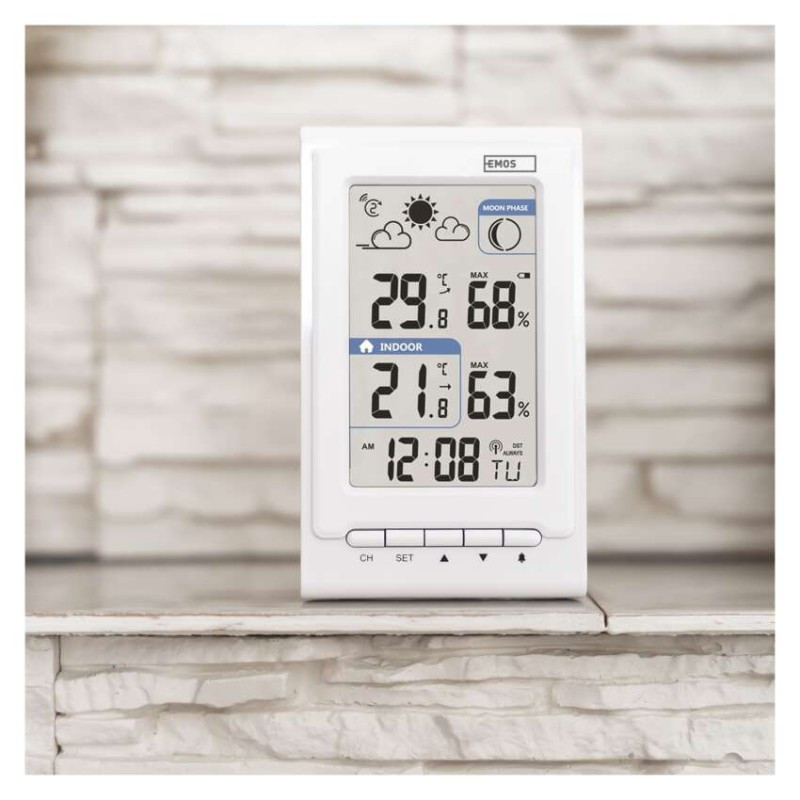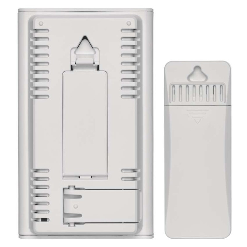 12/24 időformátum: igen|AC (hálózati) adapter: nem|a főegység méretei: 23 × 76 × 126 mm|az állomás tápellátása: 2× 1,5 V AAA (nem tartozék)|az érzékelő hatótávolsága: akár 30 m|az érzékelő tápellátása: 2× 1,5 V AA (nem tartozék)|barométer: nem|belső hőmérséklet: -10 °C és +50 °C, felbontás 0,1 °C|belső páratartalom: 1 % a 99 % RV, felbontás 1 %|csapadékmérő: nem|dátum: igen|ébresztőóra: igen|egyéb funkciók: –|elektronikus felületi háttérvilágítás: nem|értékesítési csomagolás: 1 db, kis doboz|értesítések a mobilalkalmazáshoz: –|érzékelő méretei: 21 × 38 × 100 mm|falra függesztés lehetősége: igen|folyamatos háttérvilágítás: nem|hangalapú asszisztensek általi vezérlés: –|holdfázisok: igen|hőmérő típusa: vezeték nélküli|hőmérséklet figyelmeztetés: nem|hőmérséklet tendencia: igen|időjárás-előrejelzés: igen|időzónák: igen|jelátviteli frekvencia: 433 MHz|képernyőméret: 50 × 81 mm|kivetítés: nem|kompatibilitás: –|külső hőmérséklet: -40 °C és +60 °C, felbontás 0,1 °C|külső páratartalom: 20 % és 95 % RH, felbontás 1 %|LED háttérvilágítás: nem|lehetséges kiegészítő érzékelő használata: 3 (E05018, E00387)|min. és max. hőmérséklet: igen|naptár: igen|nyomás tendencia: nem|opció a hőmérséklet mértékegység beállítására: °C/°F: °C/°F|órák: DCF (rádióvezérelt óra)|protokoll: –|szélsebességmérő: nem|színes kijelző (black mask) háttérvilágítású: nem|szundi: igen|támogatott OS: –|tengerszint feletti magasság beállítása: nem|termék: meteorológiai állomás|vezetékes szonda az érzékelőhöz: nem