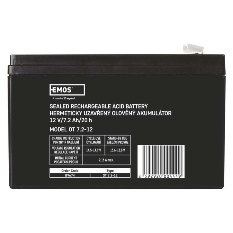 Az EMOS akkumulátor tartaléktelepként használható szünetmentes tápegységekhez, RBC készletekhez stb. A karbantartást nem igénylő, AGM kivitelű, biztonsági szelepes ólom-savas akkumulátor bármilyen helyzetben használható.