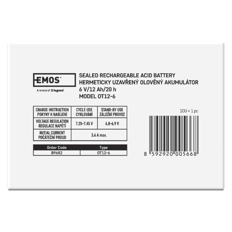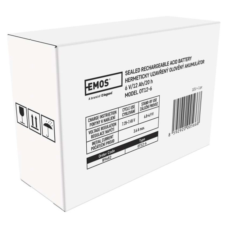 Az EMOS akkumulátor tartaléktelepként használható szünetmentes tápegységekhez, RBC készletekhez stb. A karbantartást nem igénylő, AGM kivitelű, biztonsági szelepes ólom-savas akkumulátor bármilyen helyzetben használható.