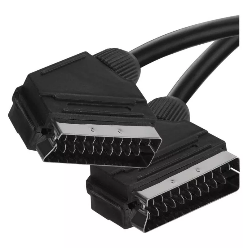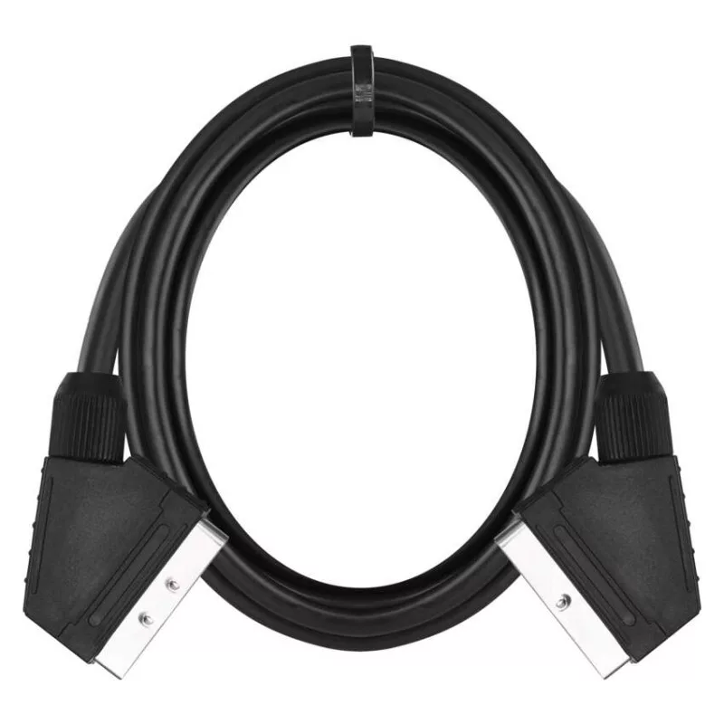 AV-kábel két SCART csatlakozóval. A kábel CCS anyagból (vörösréz borítású acélszálból) készült. A kábel használható DVD-lejátszóhoz, vevőkészülékhez, videomagnóhoz, síkképernyős tévéhez és hagyományos televízióhoz, hossza 1,5 m.