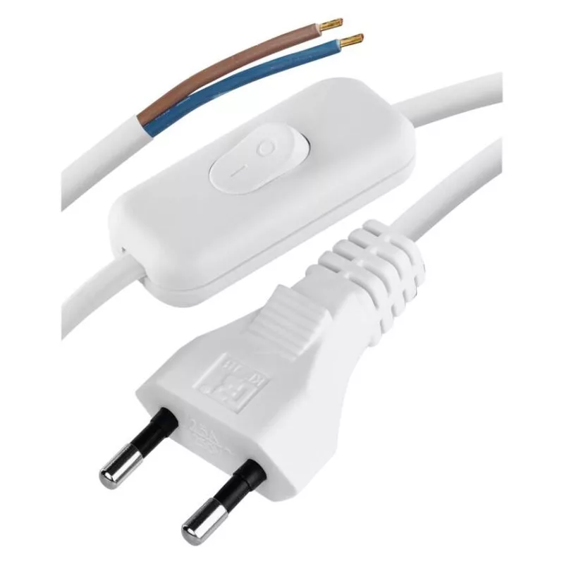 értékesítési csomagolás: 1 db, akasztható|hossz: 3 m|kapcsoló: igen (50 cm-re a szabad végtől)|szigetelés típusa: PVC|szín: fehér|típus: KF-H1/S051E4|vezeték: H03VVH2-F|vezeték keresztmetszet: 2× 0,75 mm²