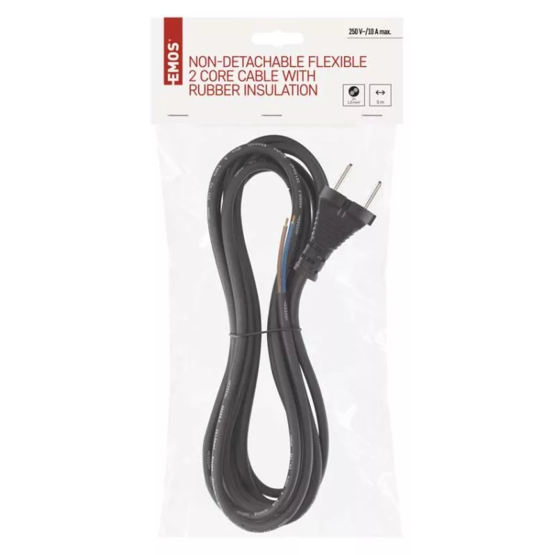 értékesítési csomagolás: 1 db, akasztható|hossz: 5 m|kapcsoló: nem|szigetelés típusa: gumi|szín: fekete|típus: SY-10|vezeték: H05RR-F|vezeték keresztmetszet: 2× 1,0 mm²