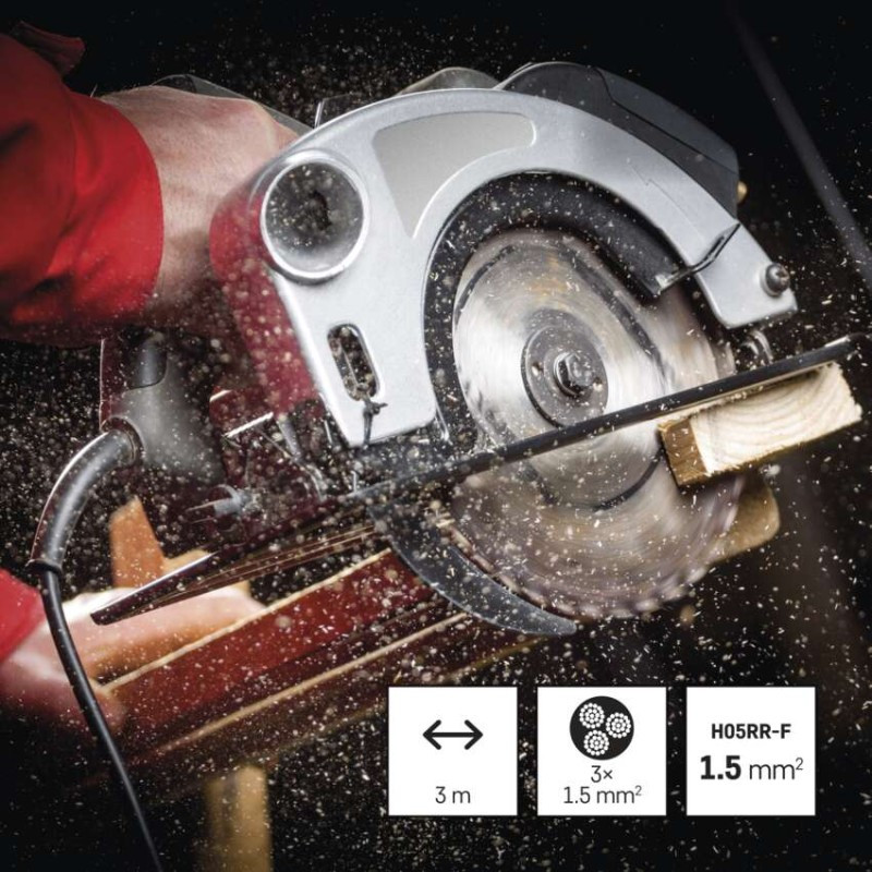 értékesítési csomagolás: 1 db, akasztható|hossz: 3 m|kapcsoló: nem|szigetelés típusa: gumi|szín: fekete|típus: SY-11|vezeték: H05RR-F|vezeték keresztmetszet: 3× 1,5 mm²