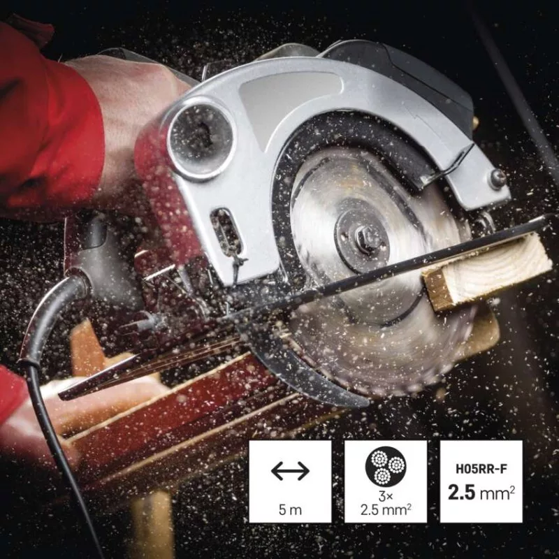 értékesítési csomagolás: 1 db, akasztható|hossz: 5 m|kapcsoló: nem|szigetelés típusa: gumi|szín: fekete|típus: SY-11|vezeték: H05RR-F|vezeték keresztmetszet: 3× 2,5 mm²