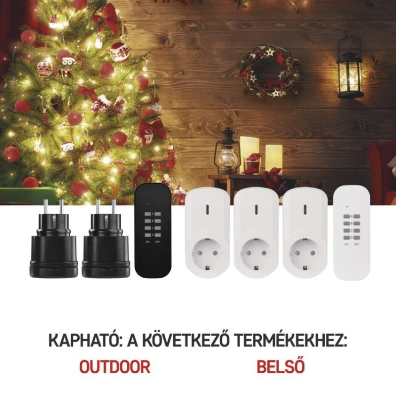 aljzatok száma: 1× 2P + PE|anyag: műanyag|biztonsági érintkezési helyzet: nincs megadva|értékesítési csomagolás: 1 db, doboz|feszültség/áram: 250 V~/13 A max.|gyerekzár: igen|jelátviteli frekvencia: 433,92 MHz|jel hatótávolsága: akár 30 méter szabad térben|kapcsoló: nem|könnyű betanítás: nem szükséges a dugaljak párosítása és nem kell telepíteni, a dugaljak automatikusan párosodnak a távvezérlőn lévő nyomógomb megnyomásával.|kültéri használat: igen|max. terhelés: 3 000 W|pólusszám: nincs megadva|szín: fekete|távvezérlő: tápellátás 1× 3 V CR2032 (tartozék)|termék: távolról irányítható aljzatok, 2 aljzat + 1 távirányító|típus: SCHUKO|védettség: IP44|vezérelhető: akár 4 aljzat