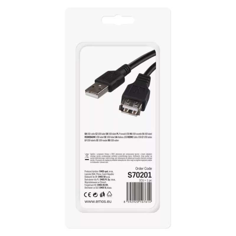 EMOS USB kábel 2.0 A – A/F csatlakozó 2m