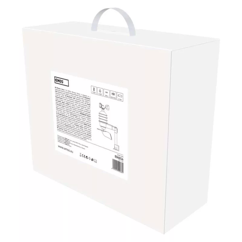 a főegység típusához tervezett: E6016|értékesítési csomagolás: 1 db, kis doboz|frekvencia: 433 MHz|hatótávolság szabad területen: akár 100 m|külső páratartalom jelző: 1 % és 99 % RH, felbontás 1 %|külső vezetékes érzékelő: nem|méretek: 275 × 135 × 310 mm|táplálás: 4× 1,5 V AA (nem tartozék)|üzemi hőmérséklet: -30 °C és +60 °C, felbontás 0,1 °C