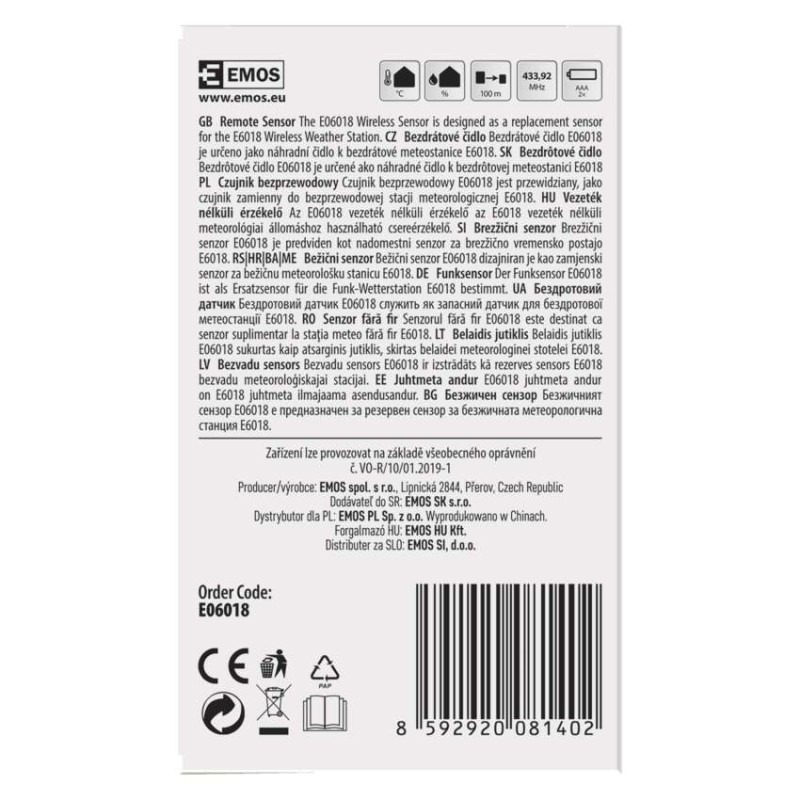 EMOS Vezeték nélküli érzékelő E06018, E6016