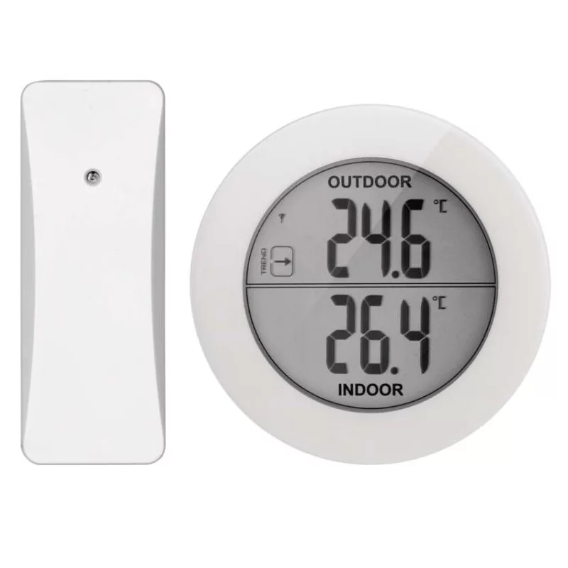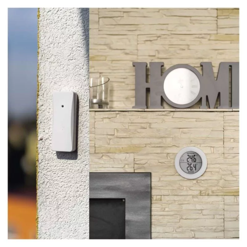 12/24 időformátum: nem|AC (hálózati) adapter: nem|a főegység méretei: 91,8 × 20 × 91,8 mm|alkalmazási nyelvek: #|az állomás tápellátása: 2× 1,5 V AAA (nem tartozék)|az érzékelő tápellátása: 2× 1,5 V AAA (nem tartozék)|az idő visszaszámlálása (max.): nem|az utolsó érték memóriája: nem|belső hőmérséklet: -10 °C és +50 °C, felbontás 0,1 °C|belső páratartalom: nem|dátum: nem|ébresztőóra: nem|egyéb funkciók: #|értékesítési csomagolás: 1 db, kis doboz|értesítések a mobilalkalmazáshoz: #|érzékelő méretei: 31 × 19 × 100 mm|falra függesztés lehetősége: igen|folyamatos háttérvilágítás: nem|hangkommunikáció: #|hatótávolság szabad területen: akár 80 m|hőmérő kialakítása: vezeték nélküli|hőmérséklet figyelmeztetés: nem|hőmérséklet index: nem|hőmérséklet tendencia: igen|időzónák: nem|jelátviteli frekvencia: 433 MHz|képernyőméret: Ø 64 mm|kompatibilitás: #|külső hőmérséklet: -30 °C és +50 °C, felbontás 0,1 °C|külső páratartalom: nem|LED háttérvilágítás: nem|lehetséges kiegészítő érzékelő használata: 1 (E05018)|mágnes illesztésre: nem|min. és max. hőmérséklet: igen|naptár: nem|nyomás tendencia: nem|opció a hőmérséklet mértékegység beállítására: °C/°F: igen|órák: nem|protokoll: #|stopperóra: nem|szerelési anyag: #|színes kijelző (black mask) háttérvilágítású: nem|szundi: nem|támogatott OS: –|vezetékes szonda az érzékelőhöz: nem