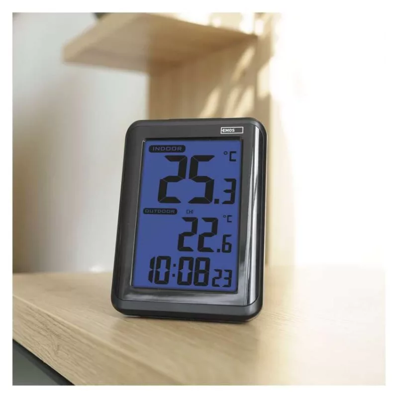 12/24 időformátum: igen|AC (hálózati) adapter: nem|a főegység méretei: 21 × 80 × 110 mm|az állomás tápellátása: 2× 1,5 V AAA (nem tartozék)|az érzékelő tápellátása: 2× 1,5 V AAA (nem tartozék)|az idő visszaszámlálása (max.): nem|az utolsó érték memóriája: nem|belső hőmérséklet: 0 °C és +50 °C, felbontás 0,1 °C|belső páratartalom: nem|dátum: nem|ébresztőóra: igen|értékesítési csomagolás: 1 db, kis doboz|érzékelő méretei: 25 × 50 × 95 mm|falra függesztés lehetősége: igen|folyamatos háttérvilágítás: nem|hatótávolság szabad területen: akár 50 m|hőmérő kialakítása: vezeték nélküli|hőmérséklet figyelmeztetés: nem|hőmérséklet index: nem|hőmérséklet tendencia: nem|időzónák: nem|jelátviteli frekvencia: 433 MHz|képernyőméret: 53 × 81 mm|külső hőmérséklet: -30 °C és +60 °C, felbontás 0,1 °C|külső páratartalom: nem|LED háttérvilágítás: igen|lehetséges kiegészítő érzékelő használata: 3 (E05018)|mágnes illesztésre: nem|min. és max. hőmérséklet: igen|naptár: nem|nyomás tendencia: nem|opció a hőmérséklet mértékegység beállítására: °C/°F: °C/°F|órák: igen, quartz|stopperóra: nem|színes kijelző (black mask) háttérvilágítású: nem|szundi: igen|vezetékes szonda az érzékelőhöz: nem