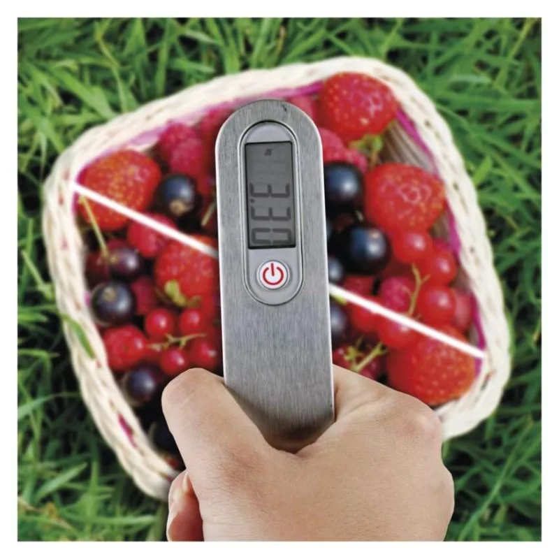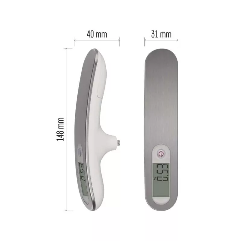 A digitális bőröndmérleg praktikus segítség a legfeljebb 50 kg-os tárgyak méréséhez. A mérlegnek köszönhetően soha többé nem kell fizetnie túlsúlyos csomagért a repülőtéren.
