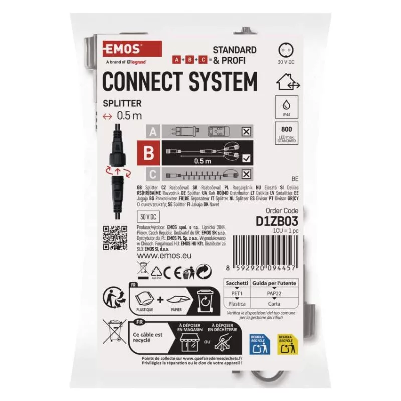 anyag: műanyag|bemeneti feszültség: 30 V DC|csatlakozások max. száma: 800 LED|élettartam: 10 000 óra|értékesítési csomagolás: 1 db, akasztható|fogyasztás: nincs megadva|garancia-időszak: 2 év|használat: kültéri és beltéri|időzítő: nem|kábel színe: fekete|kimeneti feszültség: nincs megadva|sorozathoz: standard|tápellátás típusa: nincs megadva|tápvezeték hossza: 0,5 m|távvezérlő: nem|termék: elosztó|védettség: IP44