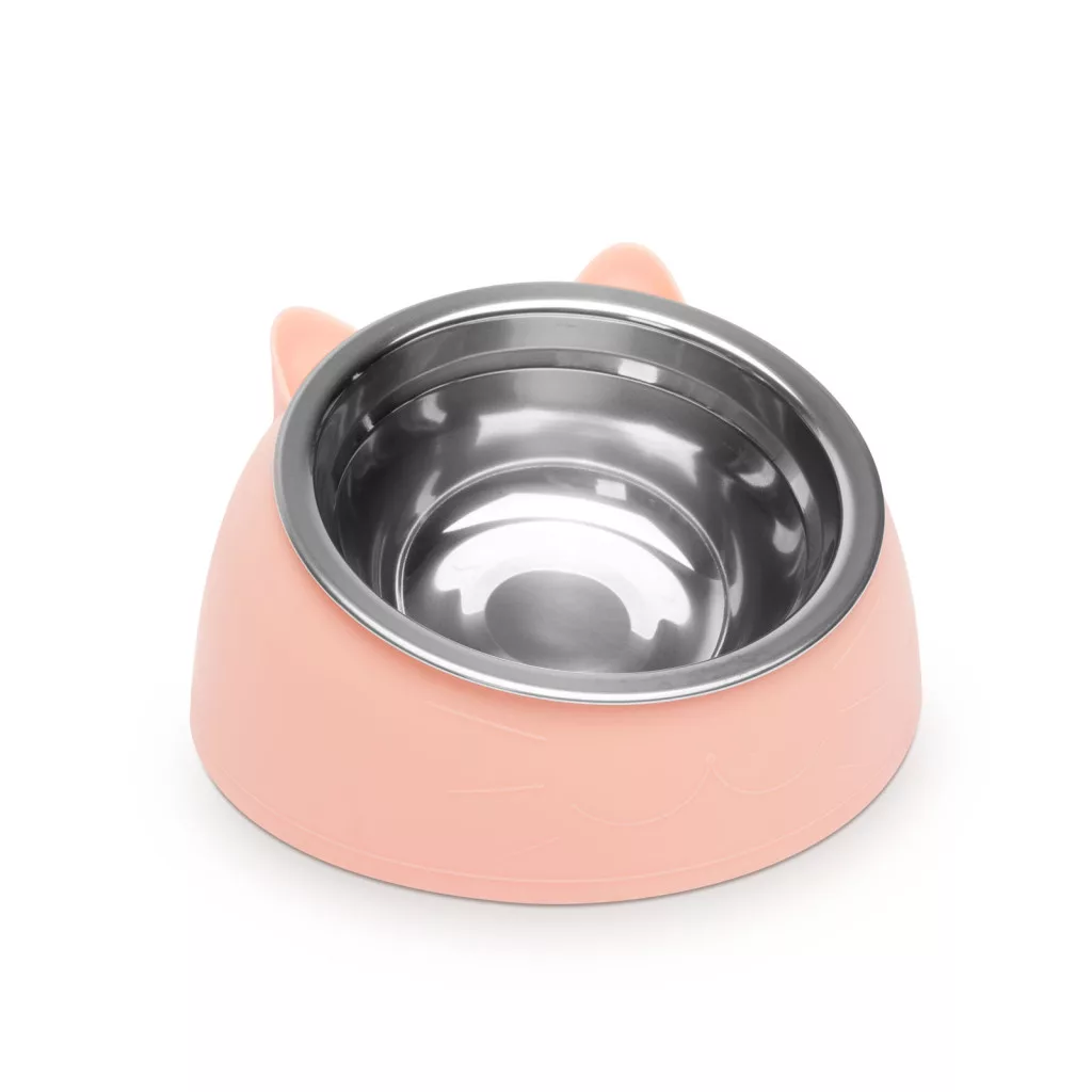 Klasszikus etetőtál, amely kivehető rozsdamentes acélból készült. A tál külső része színes műanyag, cica fülekkel díszítve. Az enyhén döntött kivitelezés felelős azért, hogy cicája még kényelmesebben fogyaszthassa el az ételt. Anyaga miatt alkalmas etetőtálnak és itatónak is.