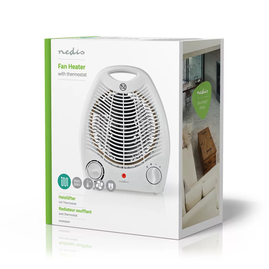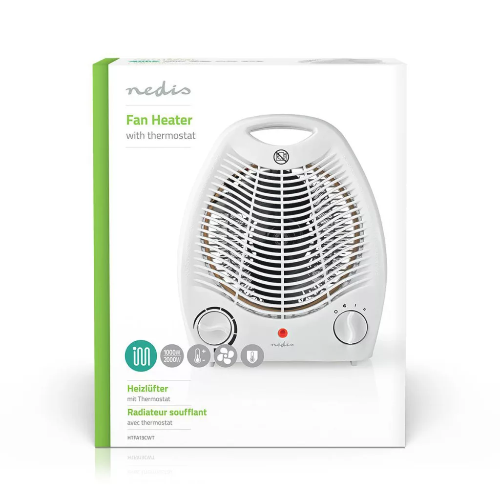 Fan Heater | 1000 / 2000 W | Állítható hőmérséklet | 2 Hőbeállítások | Beépített fogantyúval | Borulás ellen védett | Fehér